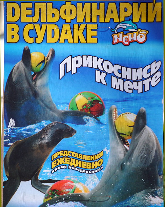 | Все столбы Судака уже увешаны рекламой дельфинария |
